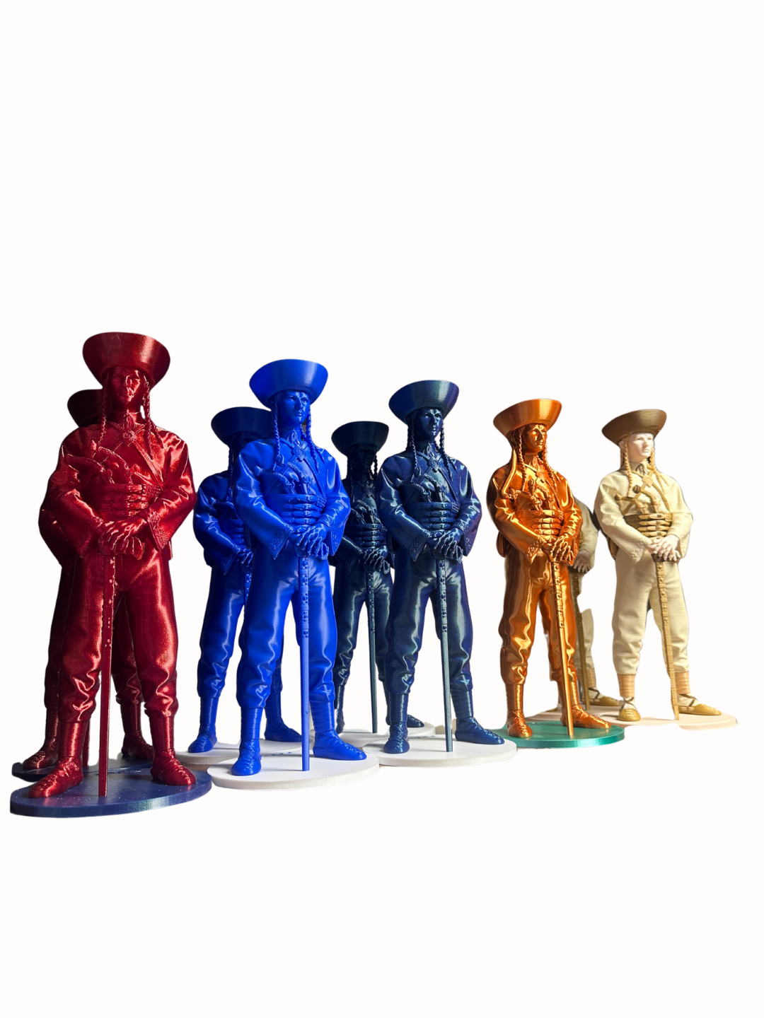In this interpretation, the artist Viktor Frešo deliberately designed Jánošík’s facial features to be as faithful as possible to the face of his grandfather, Paľo Bielik, the first Slovak film actor to portray Jánošík on screen. Through this intimate gesture, the national myth merges with personal history.