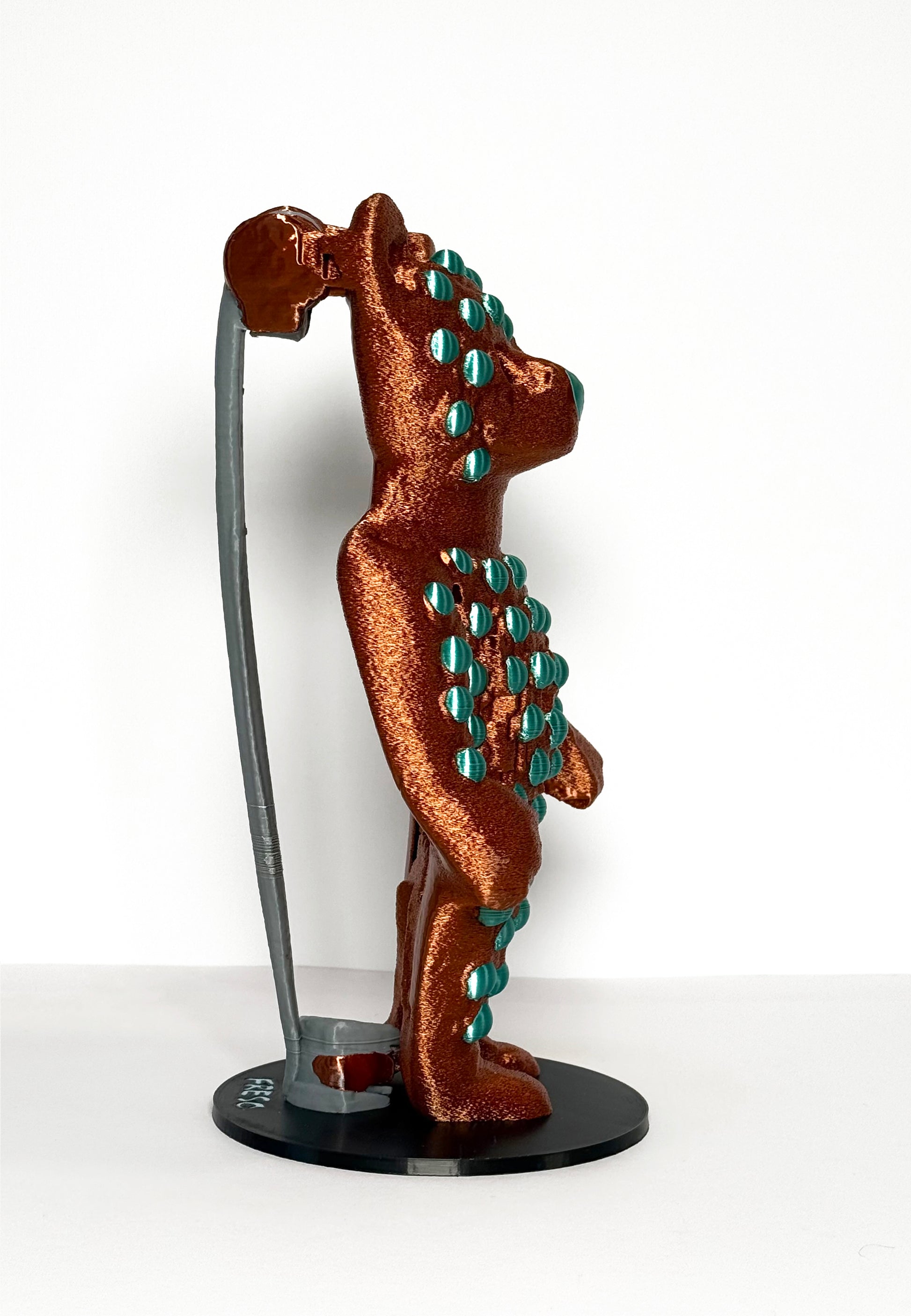 Ominka is a sculptural artwork created by Slovak contemporary artist Viktor Frešo. The piece is a 3D-printed signature sculpture, designed as a tribute to his grandmother’s golden brooch, a cherished childhood keepsake.