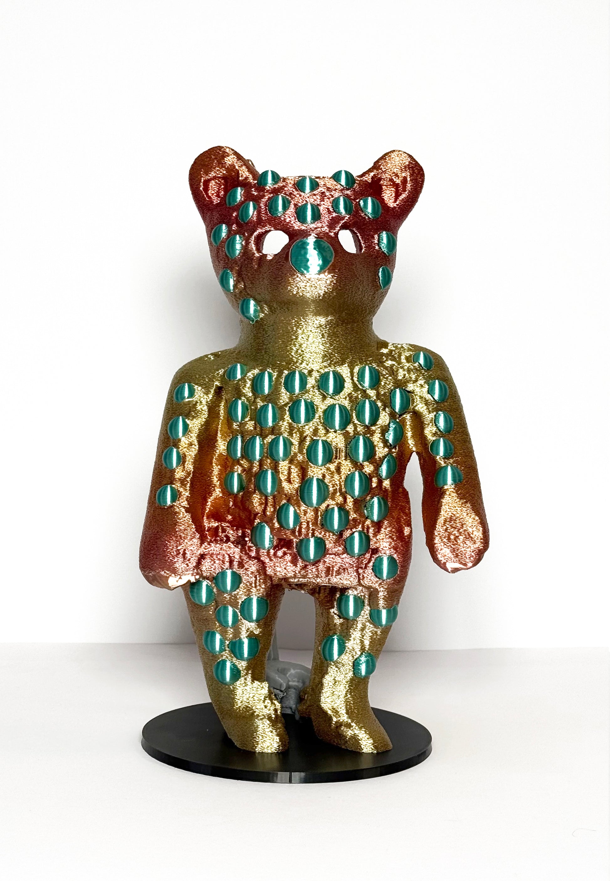 Ominka is a sculptural artwork created by Slovak contemporary artist Viktor Frešo. The piece is a 3D-printed signature sculpture, designed as a tribute to his grandmother’s golden brooch, a cherished childhood keepsake.
